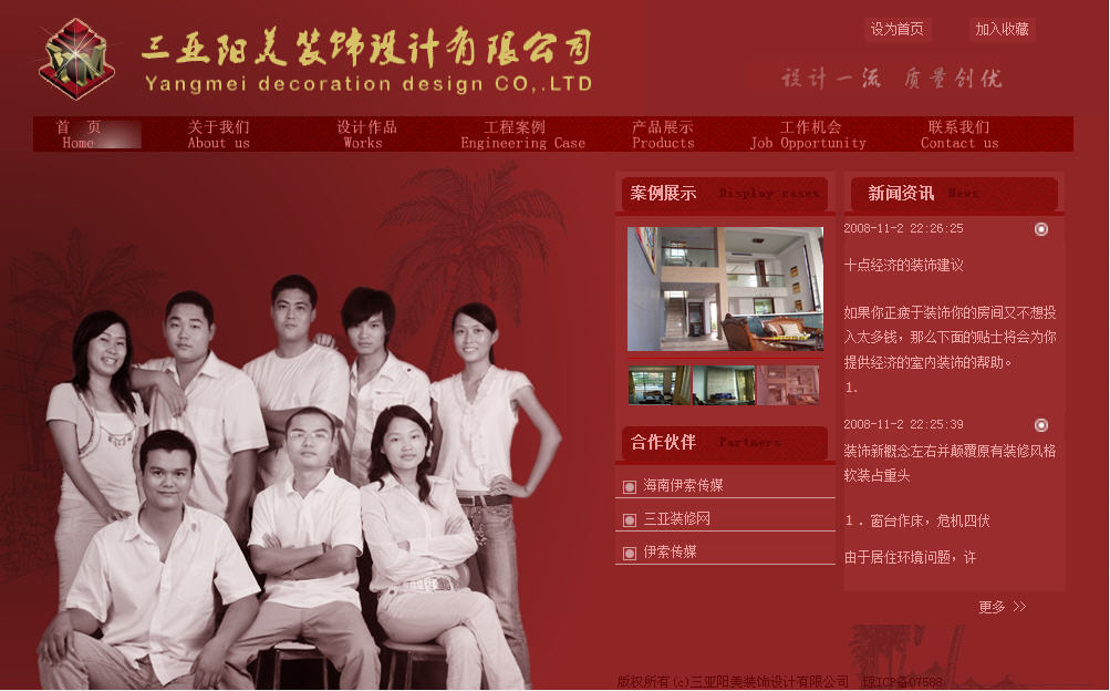 三亞陽美裝飾設計有限公司是由海南省工商行政管理局批準注冊成立的企業法人單位,公司注冊資金人民幣 100萬 元,是經海南省裝飾協會審核通過的協會會員單位,同時具備建筑裝修施工及設計雙乙級資質,主要從事各類星級酒店、高級別墅、會所、地產售樓處、樣板房、小區公寓樓以及餐飲娛樂空間等的室內外設計與裝修。