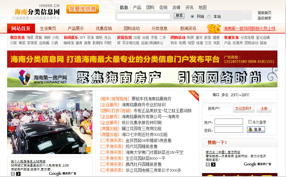 海南分類信息網是一個提供免費發布房產信息,招聘求職,二手買賣,本地服務,海南美女,社區活動,城市資訊,海口房屋出租,免費中國廣告,海南房產,的全方位分類信息平臺