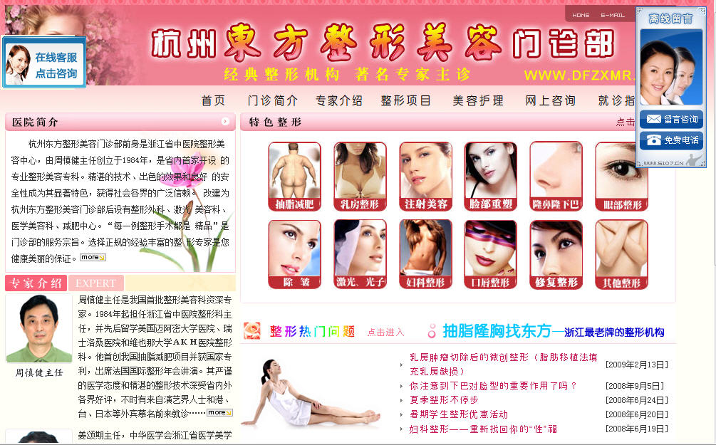 杭州東方整形美容門診部前身是浙江省中醫院整形美容中心,創立于1984年,是省內首家開設的專業整形美容專科。改建為東方整形美容門診部后設有整形外科、激光美容科、醫學美容科、減肥中心。