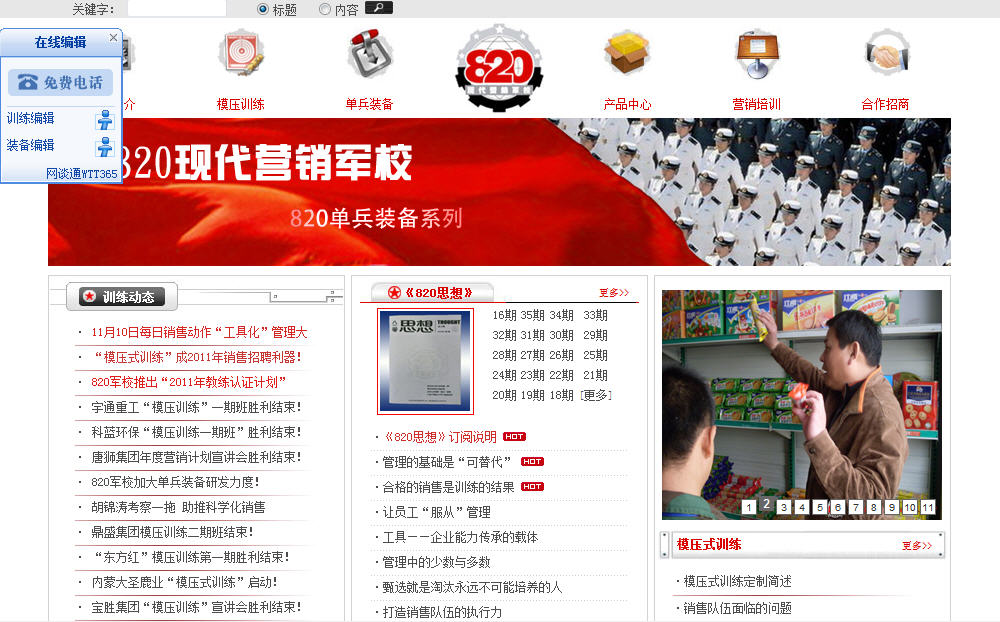 八二零現(xiàn)代營銷軍校成立于2004年,是中國第一家專注于銷售人員職業(yè)化訓練的專業(yè)機構(gòu),致力于為中國企業(yè)提供合格的銷售人員。